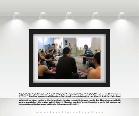camp as a result of an addict eviction project in Karaj (48 Kilometers away from Tehran). They refuse to pay for their treatment and