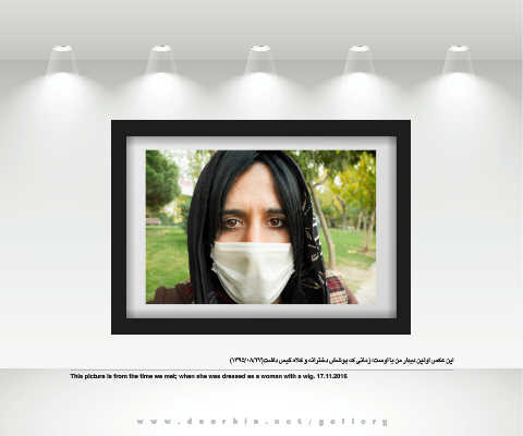 .)1395/08/27(تشاد سیگ هلاک و هنارتخد ششوپ هک ینامز ؛تسوا اب نم رادید نیلوا سکع نیا This picture is from the time we met; when she was dressed as a woman with a wig. 17.11.2016 w w w . d o o r b i n . n e t / g a l l e r y
